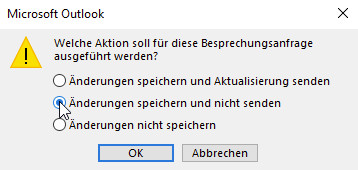 Jetzt wähle in dem dann angezeigten Fenster "Änderungen speichern und nicht senden"
