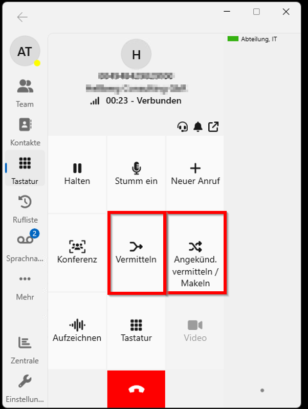 Vermitteln: Leitet den Anrufer direkt weiter.